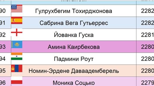 Самые шустрые шахматистки мира по данным ФИДЕ на 2025 год (топ-100 по рейтингу блица): приятно видеть наших Горячкину, Косинцеву, Лагно и др