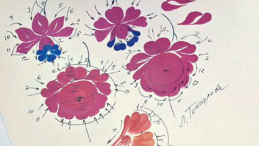 Схемы цветов в Жостово. Два вида нарцисса и две Розы. Акрил. | 18.01.2025 | Урок для начинающих ДЕМО