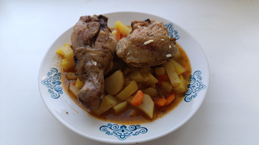 Ваши гости попросят добавки! Бюджетный и вкусный рецепт тушёного картофеля с курицей