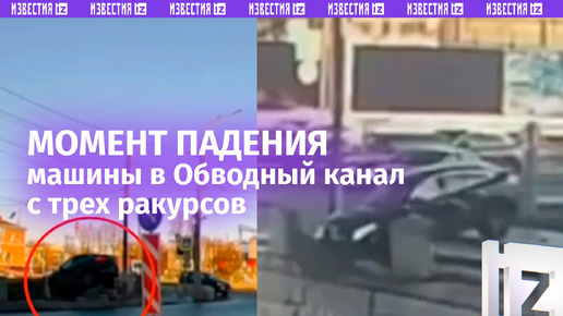 Момент падения машины в воду Обводного канала в Петербурге со всех ракурсов