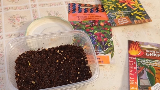 Первые всходы острых перцев, много разных сортов, в ватных дисках и в земле (халапеньо мини, мультиколор, черный жемчуг, бикиньо, ...)