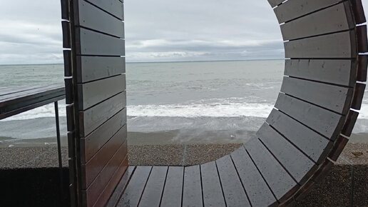 Море сегодня, Адлер, 18.01.2025. Набережная и пляж Чайка-2. Погода испортилась. Холодно и пасмурно, иногда накрапывает дождик, море штормит.