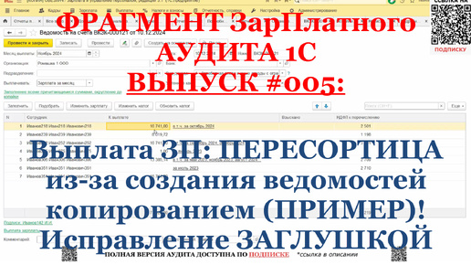 Выплата ЗП: ПЕРЕСОРТИЦА из-за создания ведомостей копированием (ПРИМЕР)! Исправление ЗАГЛУШКОЙ