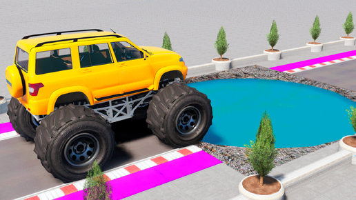СМОЖЕТ ЛИ ГИГАНТСКИЙ УАЗ ПАТРИОТ ПРОЕХАТЬ ОПАСНУЮ ЯМУ С ВОДОЙ В ГТА 5 МОДЫ - ЭКСПЕРИМЕНТЫ В GTA 5 MODS