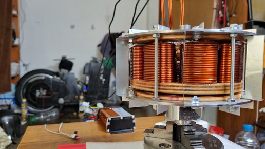 Запуск самодельного электродвигателя 6 квадратов, вес 4.5кг, тест лопаток для охлаждения обмоток