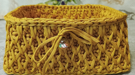 Квадратная корзинка из полиэфирного шнура узором соты, с фетровой подкладкой, МК