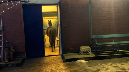 Лошади идут домой после прогулки.