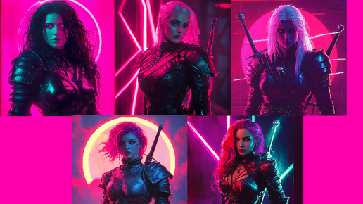 Героини вселенной Ведьмака в ведьмачей броне в синтвэйв стиле #midjourneyartwork #midjourney