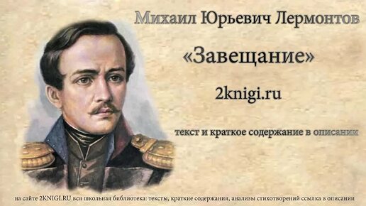 Лермонтов М.Ю. "Завещание" ("Наедине с тобой брат...") - стихотворение.