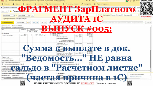 Сумма к выплате в док. "Ведомость..." НЕ равна сальдо в "Расчетном листке" (частая причина в 1С)