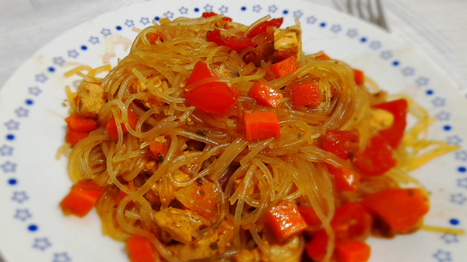 Фунчозу у нас называют стеклянной лапшой. Отлично гармонирует с овощами, курочкой или же другими продуктами.