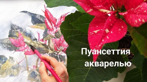 Пуансеттия акварелью с применением масляной пастели для резерва