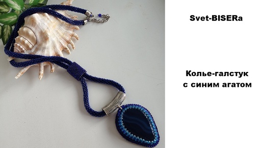 Колье-галстук с синим агатом