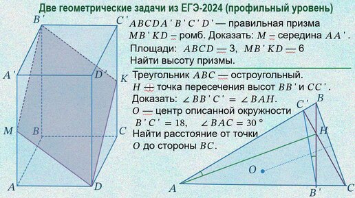 Две геометрические задачи из ЕГЭ-2024 (профильный уровень)