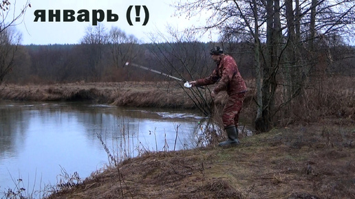 Рыбалка на 10 закидушек в январе на малой реке! Рыбалка по открытой воде зимой!