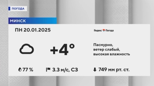 🌨️Погода в Союзном государстве на 20.01.2025