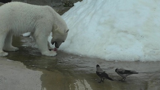 Работники зоопарка прячут мясо от белого медведя, а он его ищет. Классное шоу получается