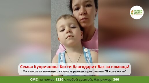 Ваша помощь для онкомалыша Кости оказалась своевременной! Спасибо!