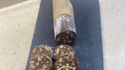 Шоколадная колбаса со сгущёнкой из печенья и орехов
