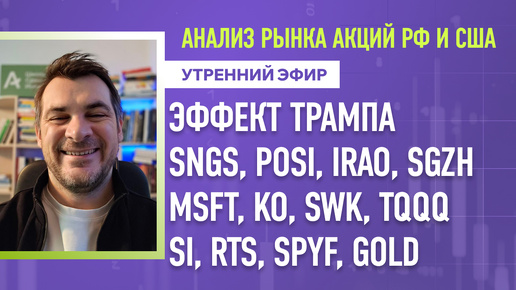 Анализ рынка акций РФ и США/ Эффект Трампа/ SNGS, POSI, IRAO, SGZH MSFT, KO, SWK, TQQQ/ RTS, SPYF