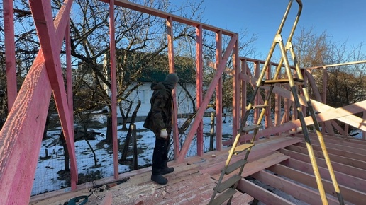 Строю каркасный дом сам. 18-19 января 2025 - закончил с укосинами и стойками!