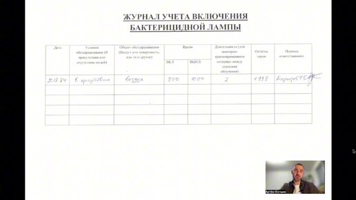 Журналы в общественном питании. Журнал включения бактерицидной лампы