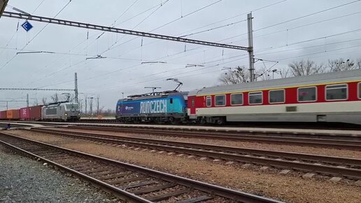 Встречные грузовой и пассажирский поезд на очень высокой скорости