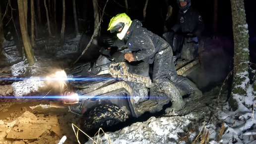 ТАРАНИМ ЛЕД НОЧЬЮ. Квадроциклы застревают в просеке.