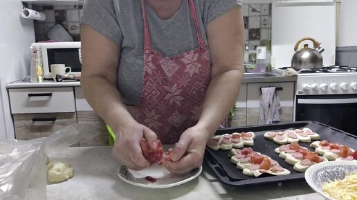Выпечка пирожков. Печёные, жаренные. Необычная форма пиццы.