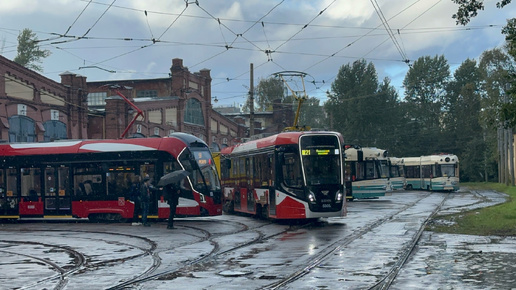 "В ливень!" Трамвай КТМ-28 (71-628-02) №5505 в трамвайном парке №3, октябрь 2024 года