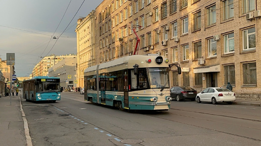 "Вдогонку!" Трамвай "Довлатов" (71-421Р-01) №3815 и автобус ЛиАЗ-5292.65 №1544 на Косой линии В.О., октябрь 2024 года