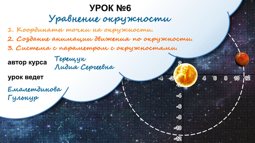 Урок №6. Уравнение окружности. Анимация движения планеты и ее спутника по окружностям. Система с параметром с окружностями.