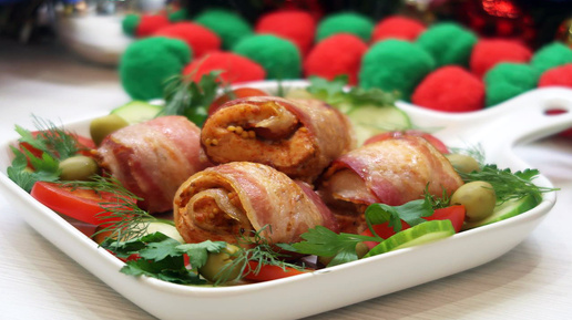 Куриные рулетики в беконе