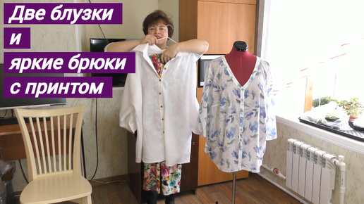 Две блузки и яркие брюки с принтом . Сшила для клиентки .