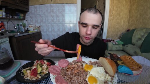 МУКБАНГ НАРЕЗКИ ЛУЧШЕЕ - ГРЕЧКА С КОЛБАСОЙ / ЯИЧНИЦА / САЛАТ / МОРОЖЕНОЕ / MUKBANG АСМР 21. 01. 2025