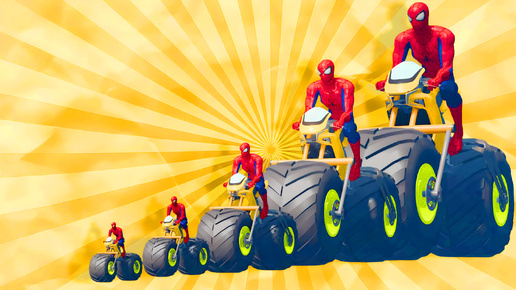 БОЛЬШОЙ И МАЛЕНЬКИЙ ЧЕЛОВЕК - ПАУК НА МОТОЦИКЛЕ С БОЛЬШИМИ КОЛЁСАМИ ПРОТИВ ПОЕЗДА