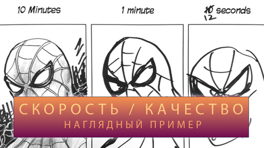 Влияние времени на качество работ или как нарисовать человека паука за 10 секунд и 10 минут. Сравнение скорости работ и качества выполнения