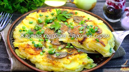 Нарядная, аппетитная. Жареная картошка с луком и сыром