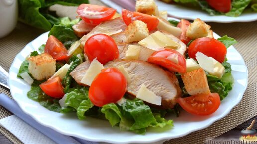 Любимец праздничных столов. Салат "Цезарь" с курицей и помидорами