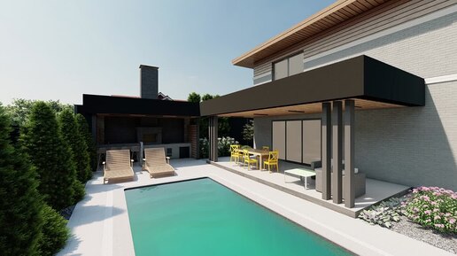 3Д-визуализация дизайн-проекта двора 8 соток в КП Изумрудный Красиво в анимированном видео.