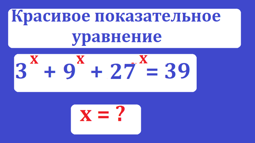 Решите показательное уравнение: 3^x + 9^x + 27^x = 39