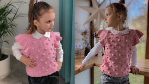 Нарядный жилет спицами для девочки. Часть 1.