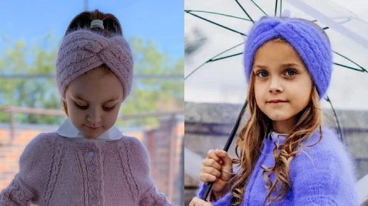 Красивая и очень теплая повязка на голову. Двойная повязка спицами. Подробный мастер класс.