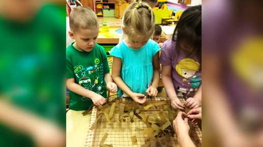 В Советском районе дети плетут маскировочные нашлемники для пап-бойцов СВО
