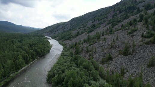 Нижние ворота реки Балбанъю восточная. Бассейн р. Хулга. Вид с коптера. Ханты-Мансийский автономный округ.
