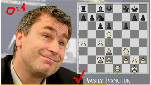 Юный талант Василий Иванчук ставит мат своей черной ладьей, пожертвовав ферзя 32...♕xg2+ Ларсу Хансену в Гронингене, 1986, 0-1