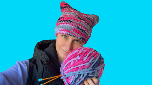 Как Связать Красивую и Модную Шапку за 1 Час для Новичка. Вязание на Прямых Спицах из Толстой Пряжи. Современная Модная Одежда Своими Руками