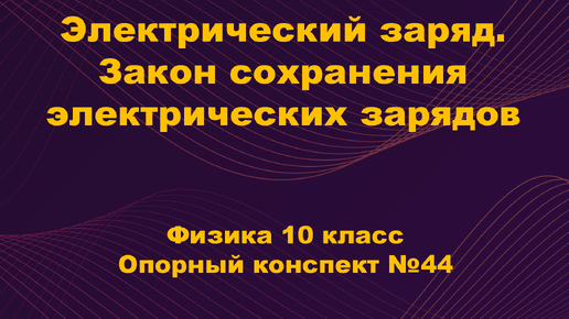 Физика10 ОК 44 Электрический заряд. Закон сохранения электрических зарядов.