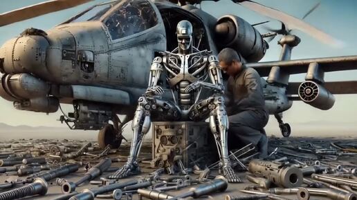 "Терминатор побеждает в каждой битве с помощью вертолета" AI-ролик