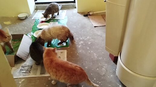 Котики всегда делятся кашей с собакой.